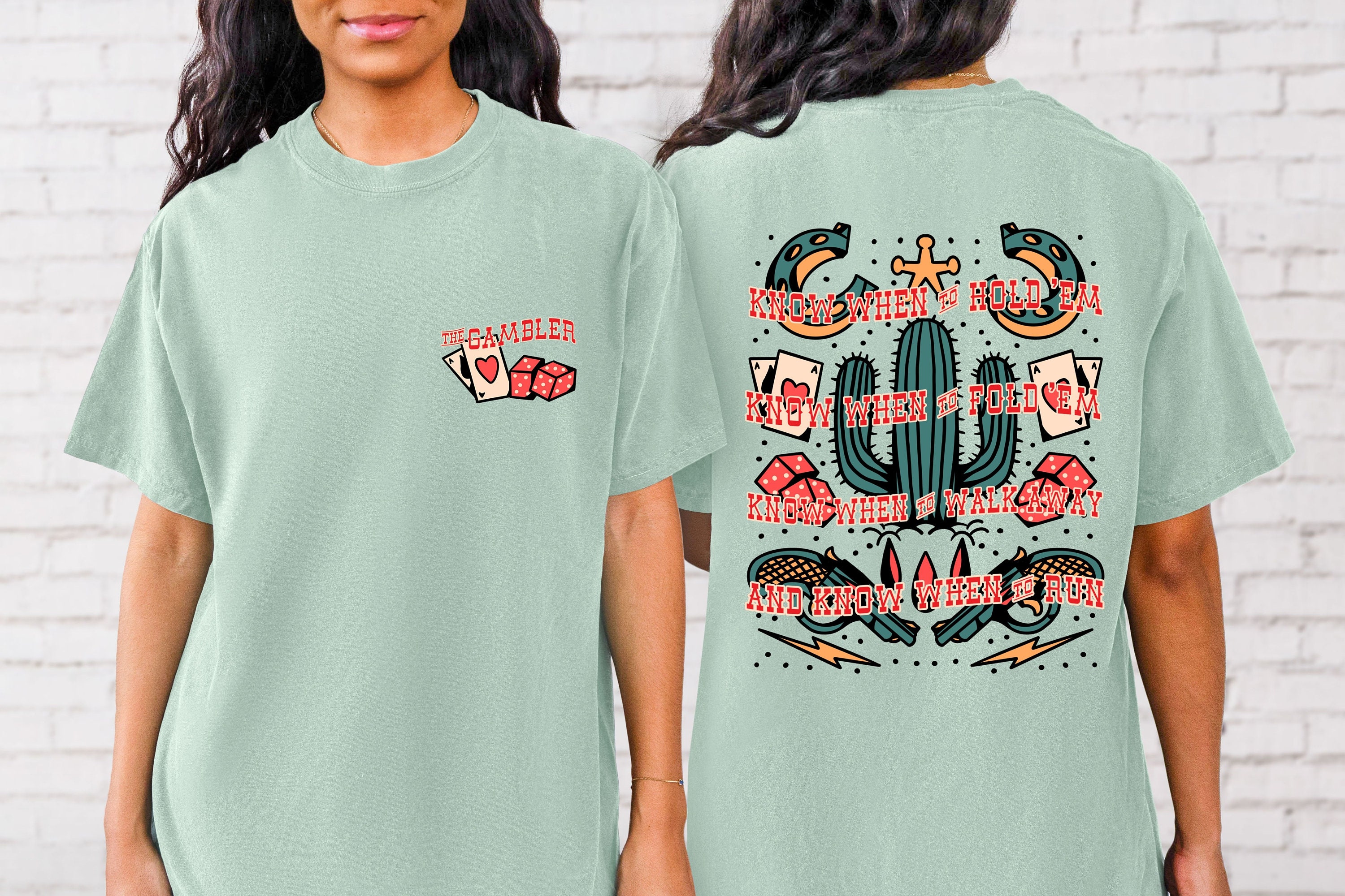 The Gambler, Front and Back, Western Graphic T-Shirt