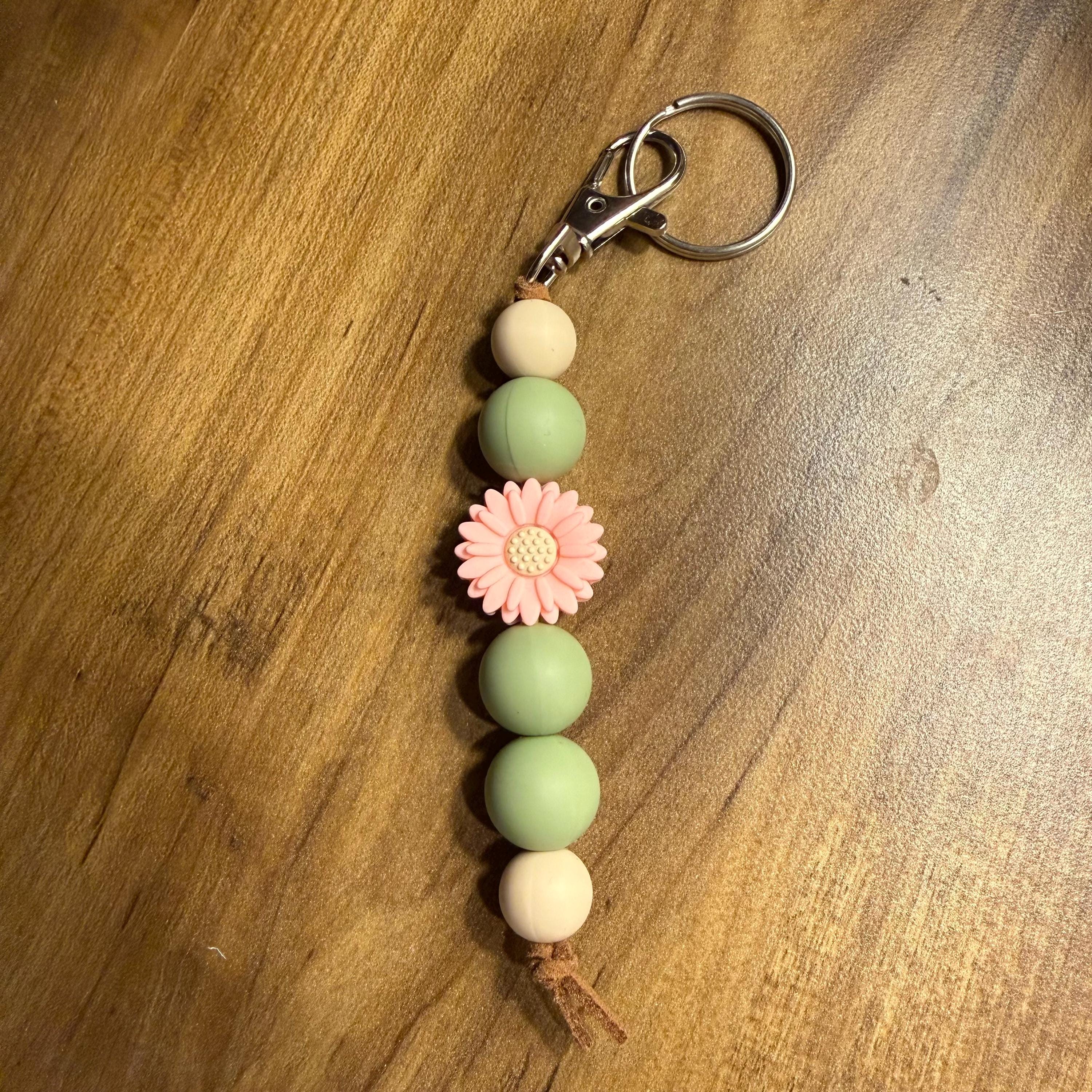 Pink & Green Sunflower, Silicone Bead Keychain